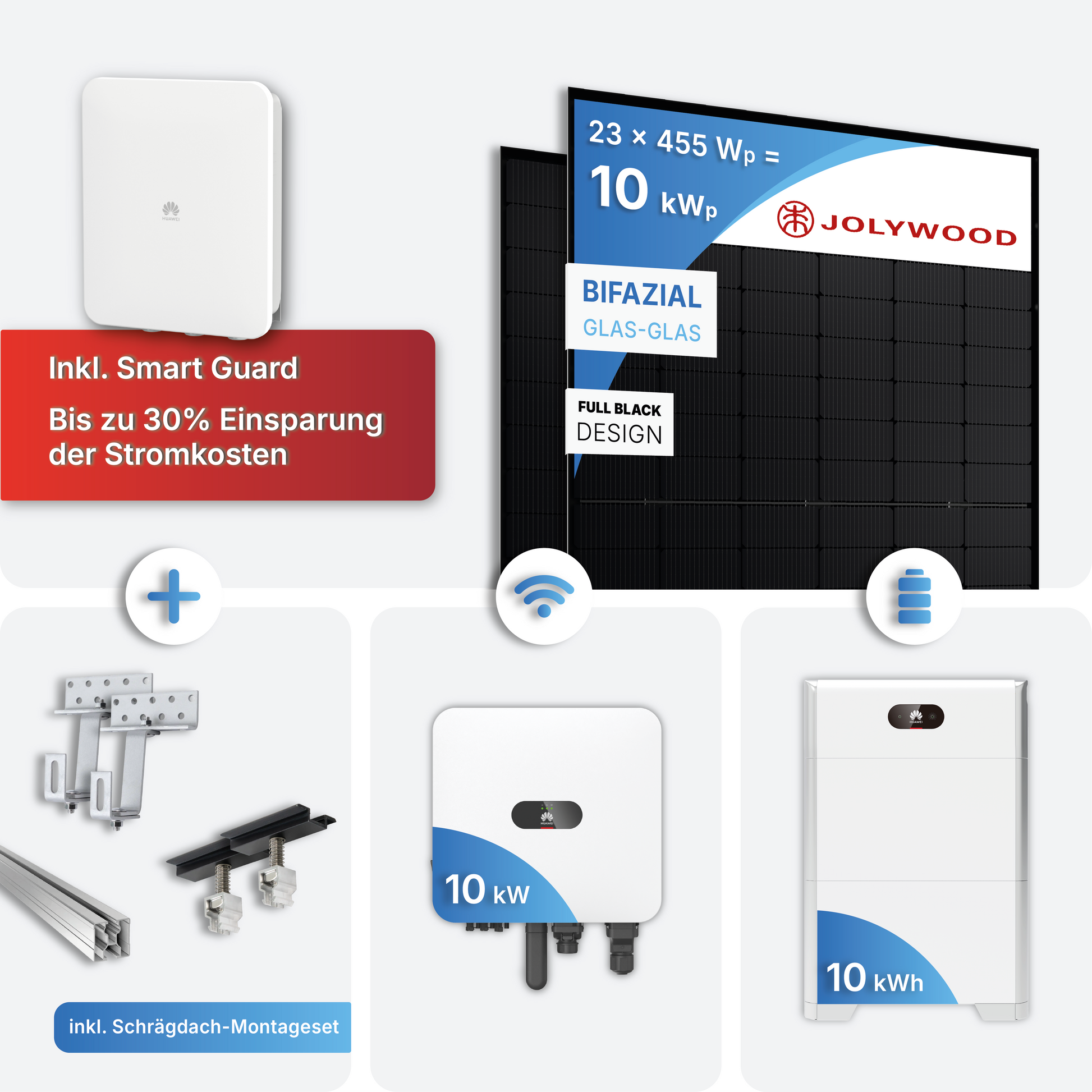 10 kWp PV Anlage Huawei MAP0 mit 10 kWh Speicher - Bifazial, Full Black inkl. Montageset