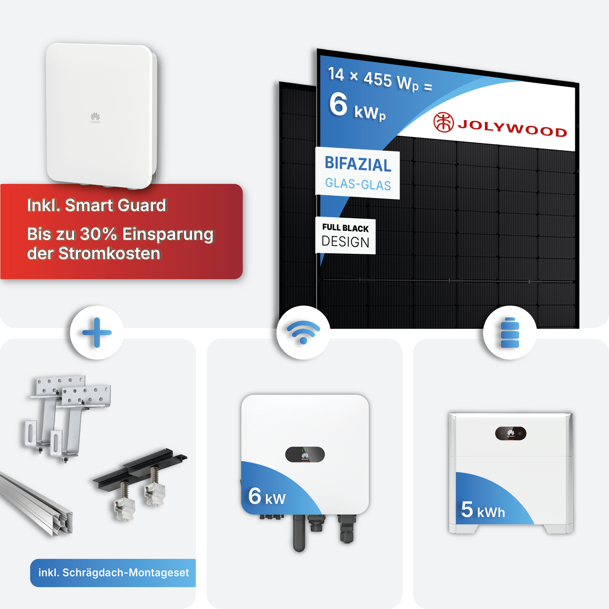 6 kWp PV Anlage Huawei MAP0 mit 5 kWh Speicher - Bifazial, Full Black inkl. Montageset
