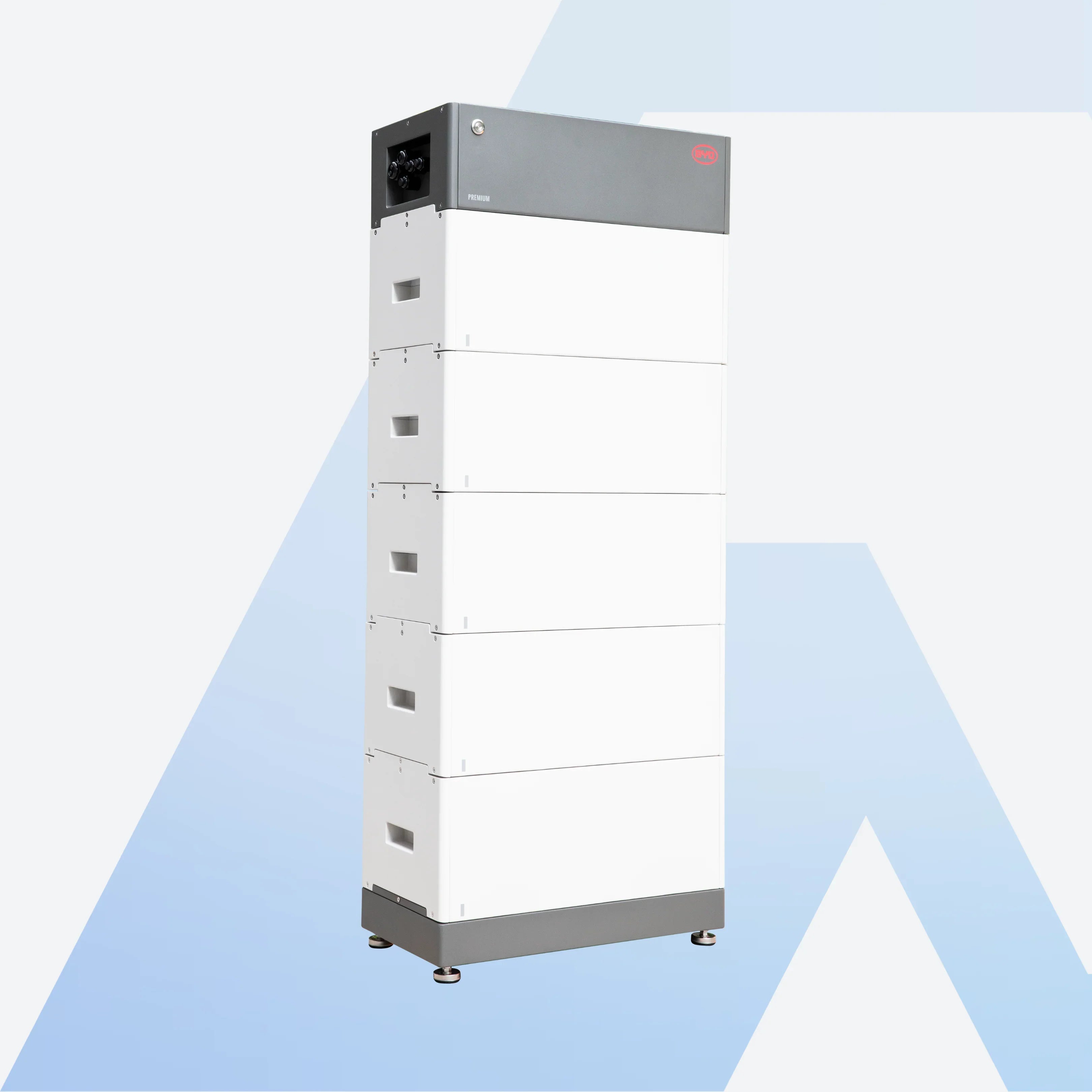 - Der BYD HVS besteht aus weniger, aber größeren Modulen und bietet eine Speicherkapazität von 5,1 kWh bis 38,4 kWh.